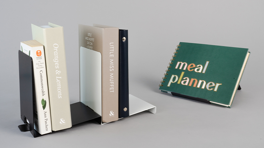 ブックエンドの向きを変えることで、ディスプレイスタンドとしても活用できます。お気に入りの本を面見せして飾っておける 2WAY 仕様です。