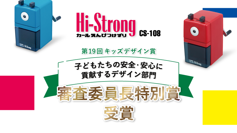 カール事務器株式会社(本社:東京都葛飾区立石3-7-9、代表取締役社長:森 靖澄ベンジャミン)が販売する、シャープな切れ味が特長のロングセラー鉛筆削り「ハイストロング」が、「キッズデザイン賞」の〈子どもたちの安心・安全に貢献するデザイン部門〉 審査委員長特別賞を受賞いたしました。