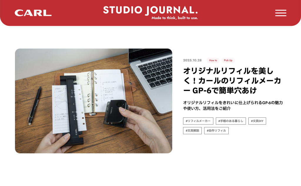 カール事務器株式会社(本社:葛飾区立石3-7-9、代表取締役社長:森 靖澄ベンジャミン)は、文具・オフィス用品を通じて日々の仕事や暮らしをより豊かにする情報を発信するメディアサイト「STUDIO JOURNAL.(スタジオジャーナル)」を開設いたしました。